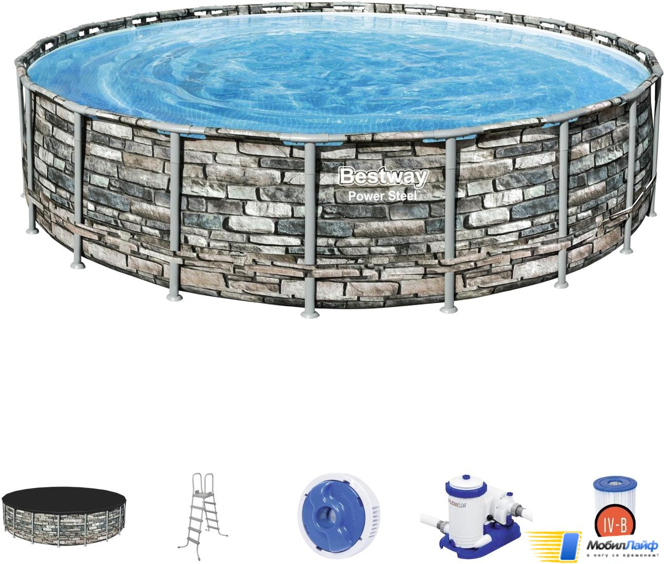 Каркасный бассейн Bestway Power Steel Камень 56883 (610x132)